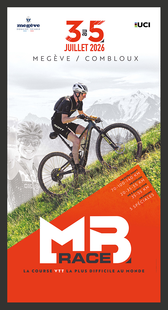 La pente est toujours aussi raide mais le décor toujours aussi fabuleux. Création du visuel 2026 pour la MB RACE, LA course VTT marathon de référence en Haute-Savoie.