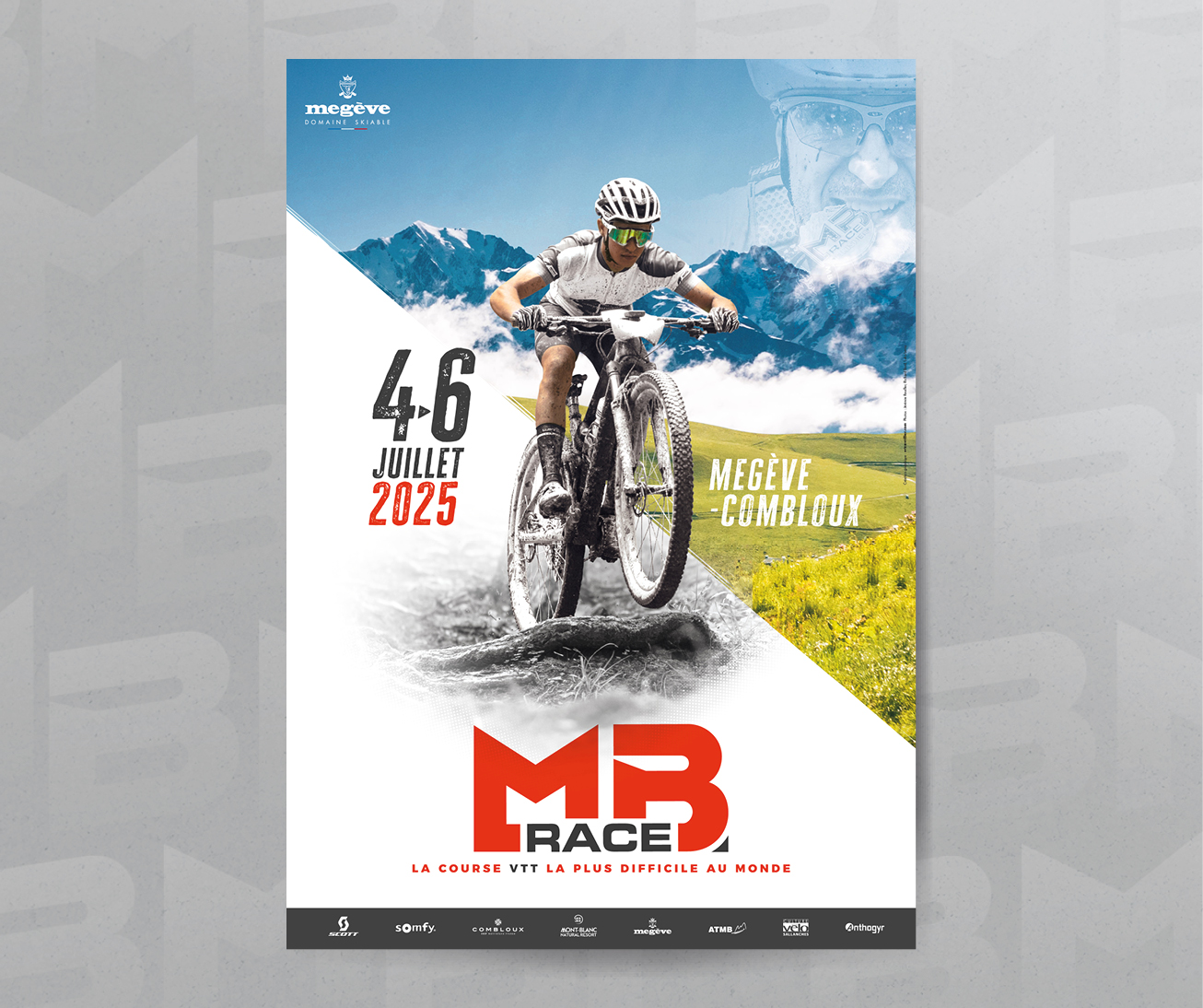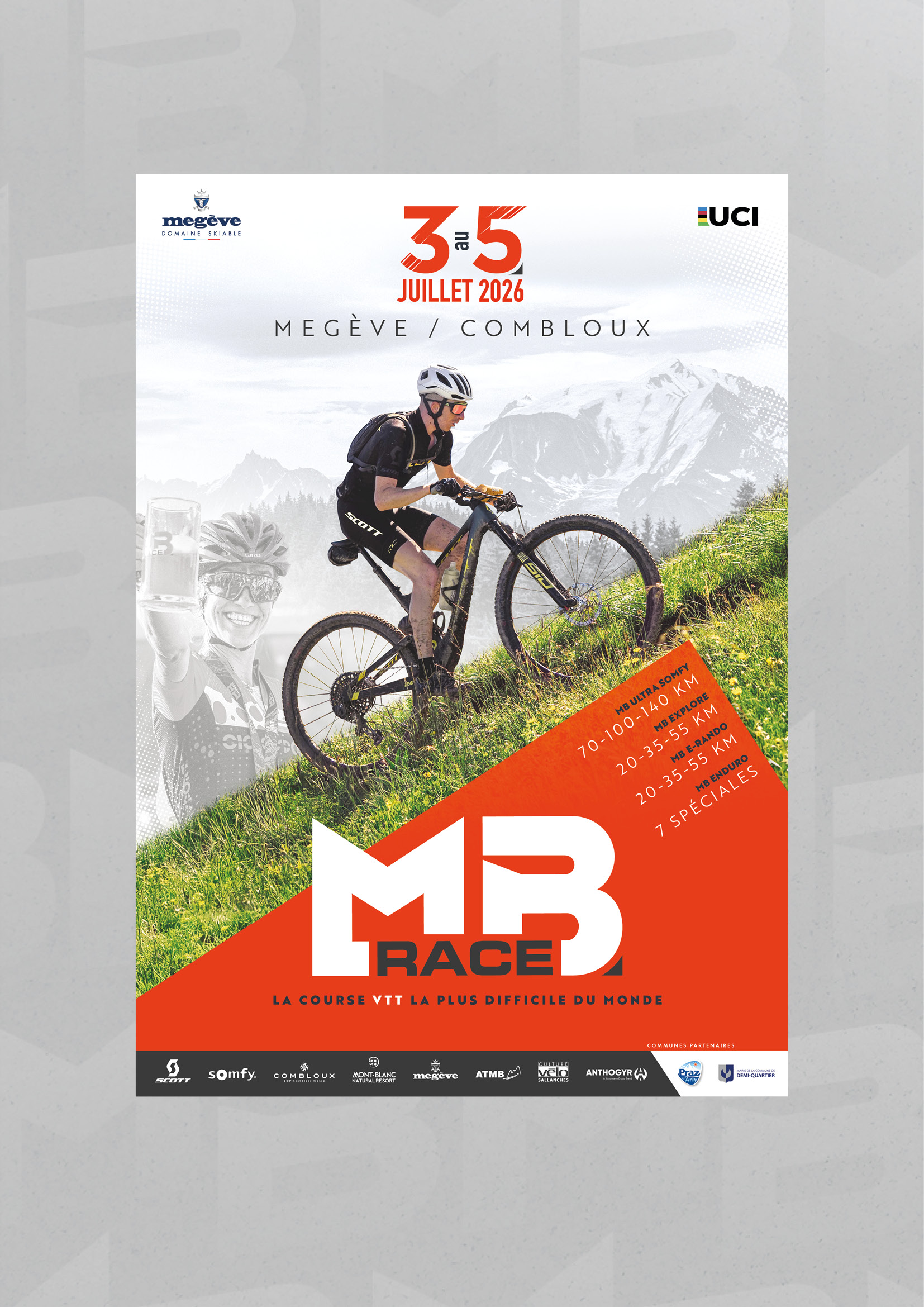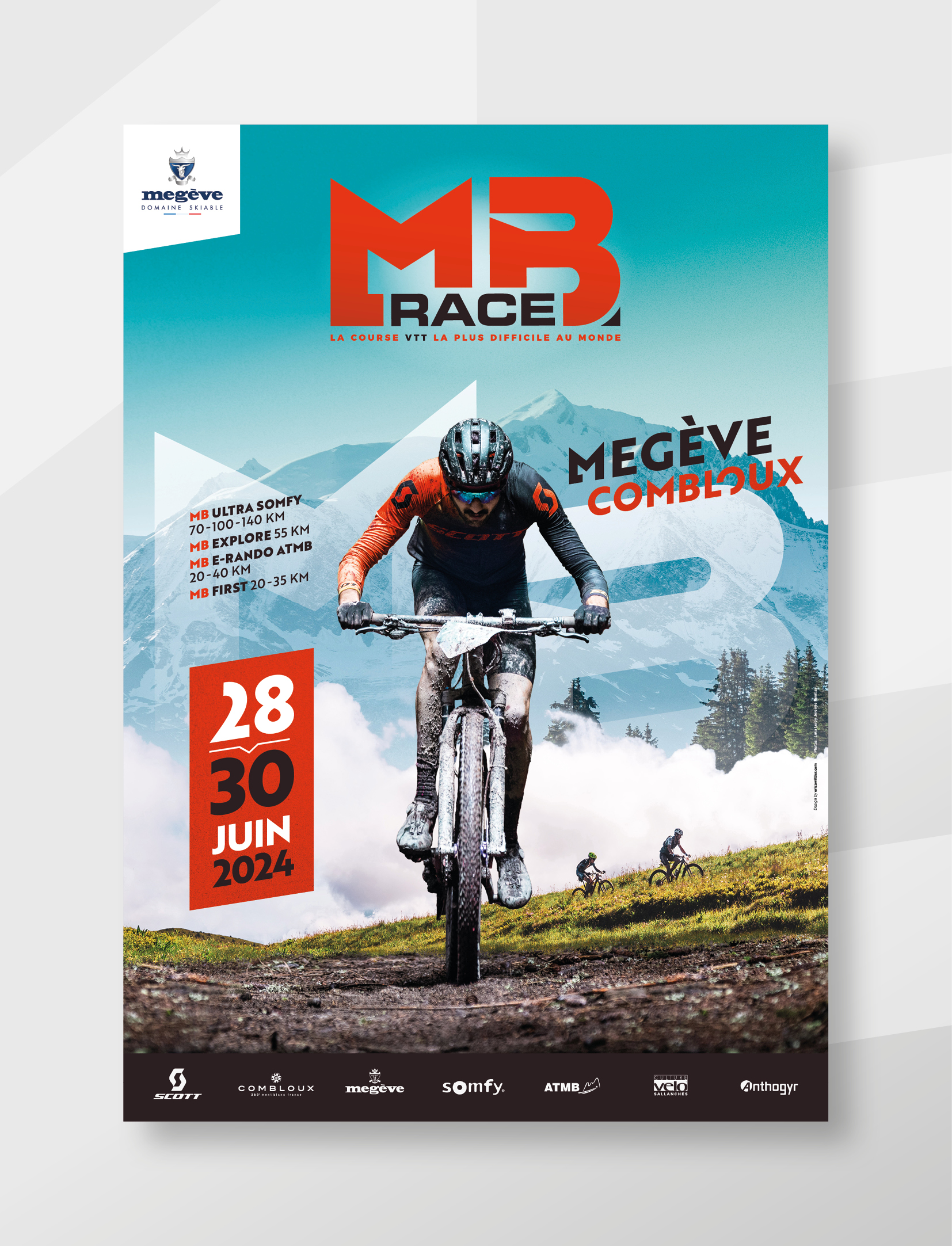 Depuis 2023, je crée le visuel de l’évènement de la course VTT « la plus difficile au monde » qui se déroule à Megève/Combloux (Haute-Savoie). Transmettre les valeurs de cette course hors-norme à travers un visuel dynamique, tout en ajoutant une note graphique à travers les typographies et la composition.